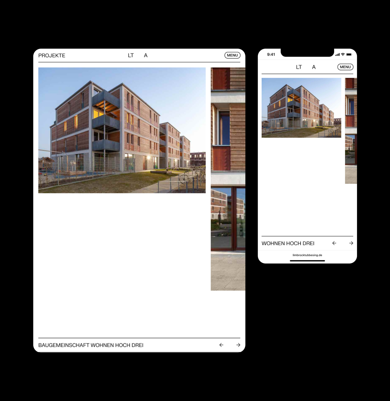 Für das Hamburger Architektur Büro Limbrock Tubbesing Architekten ist ein minimalistisches sowie typografielastiges Corporate Design entstanden. Der Einsatz von großflächigem Weißraum lässt Raum für die Wirkung der vielfältigen Projekte. Die Verwendung der Linie als primäres Gestaltungselement unterstreicht den Leitgedanken von Konsequenz in Konzept, Organisation und Objektplanung des Büros. Neben einer Website wurde die Geschäftsausstattung sowie diverse Printmedien gestaltet.